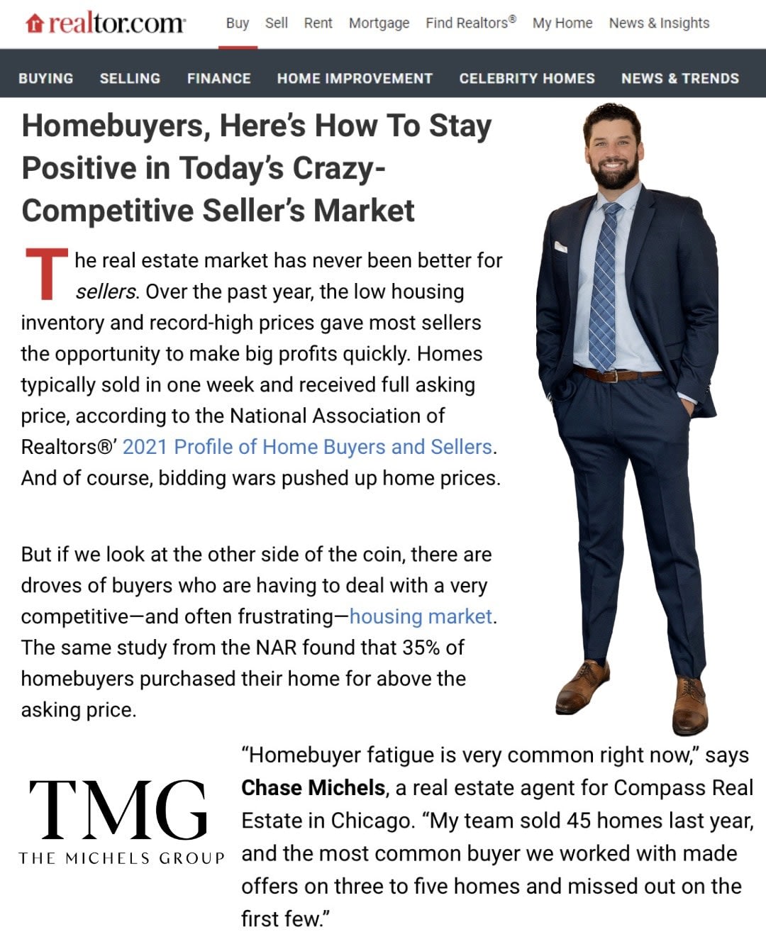 “Homebuyer fatigue is very common right now,” says Chase Michels, a real estate agent for Compass Real Estate in Chicago. “My team sold 45 homes last year, and the most common buyer we worked with made offers on three to five homes and missed out on the first few.”