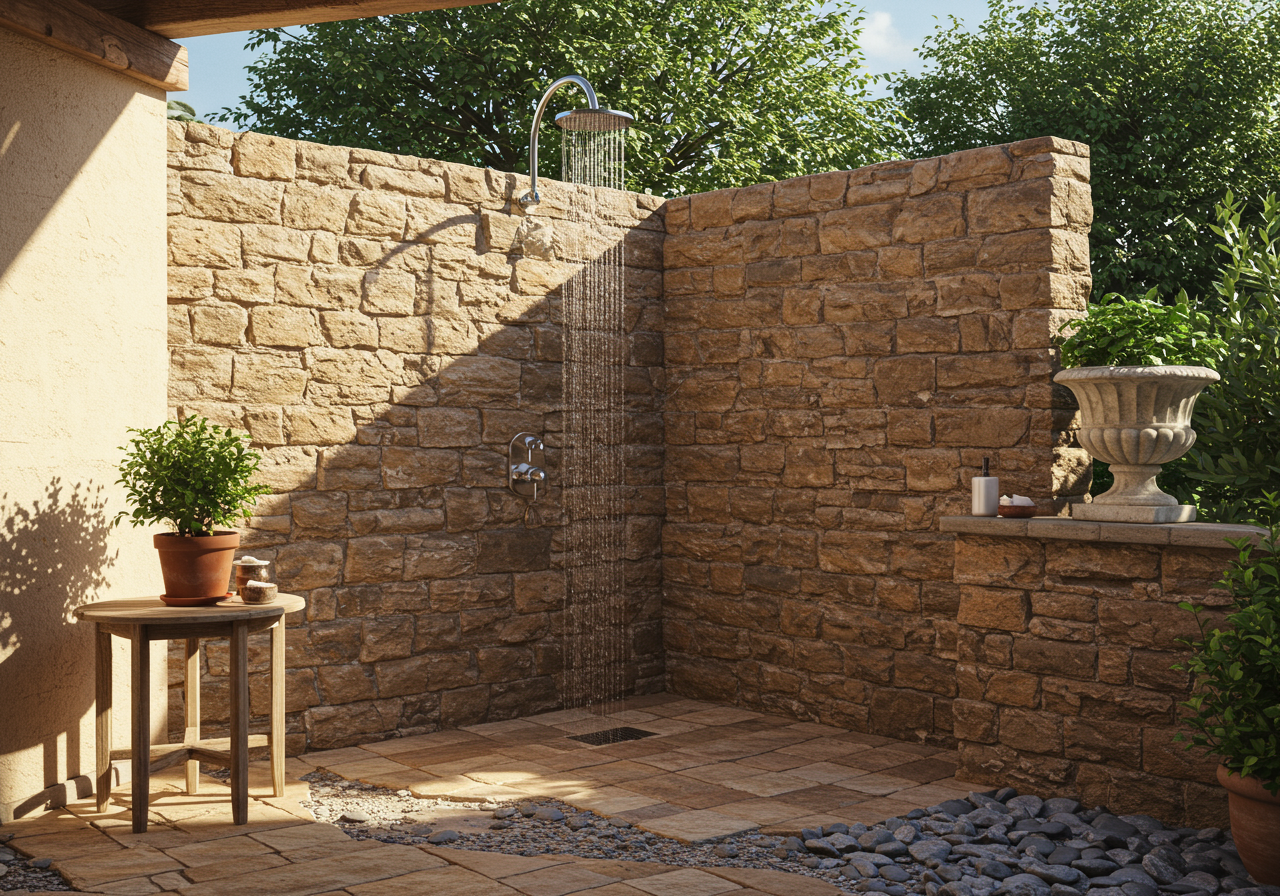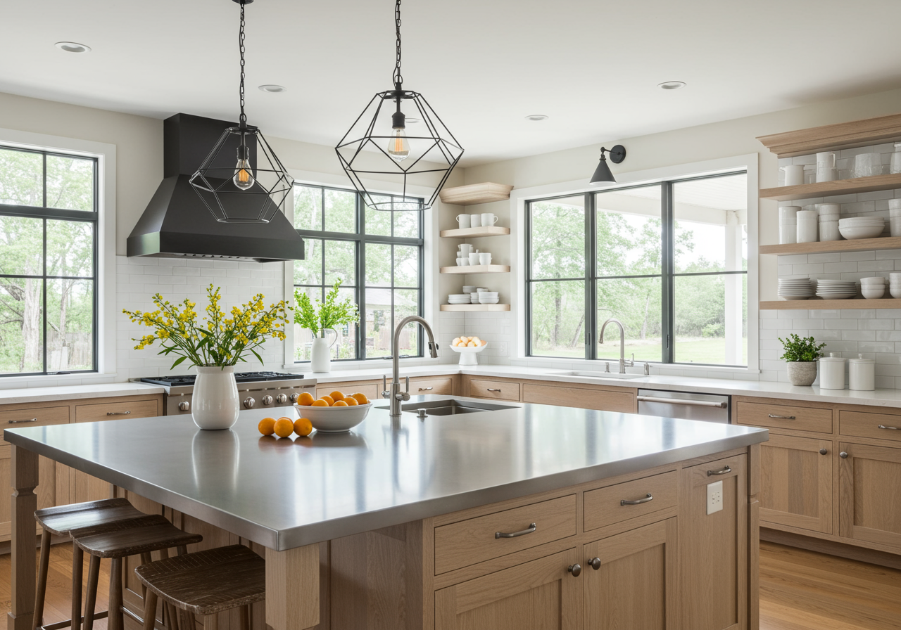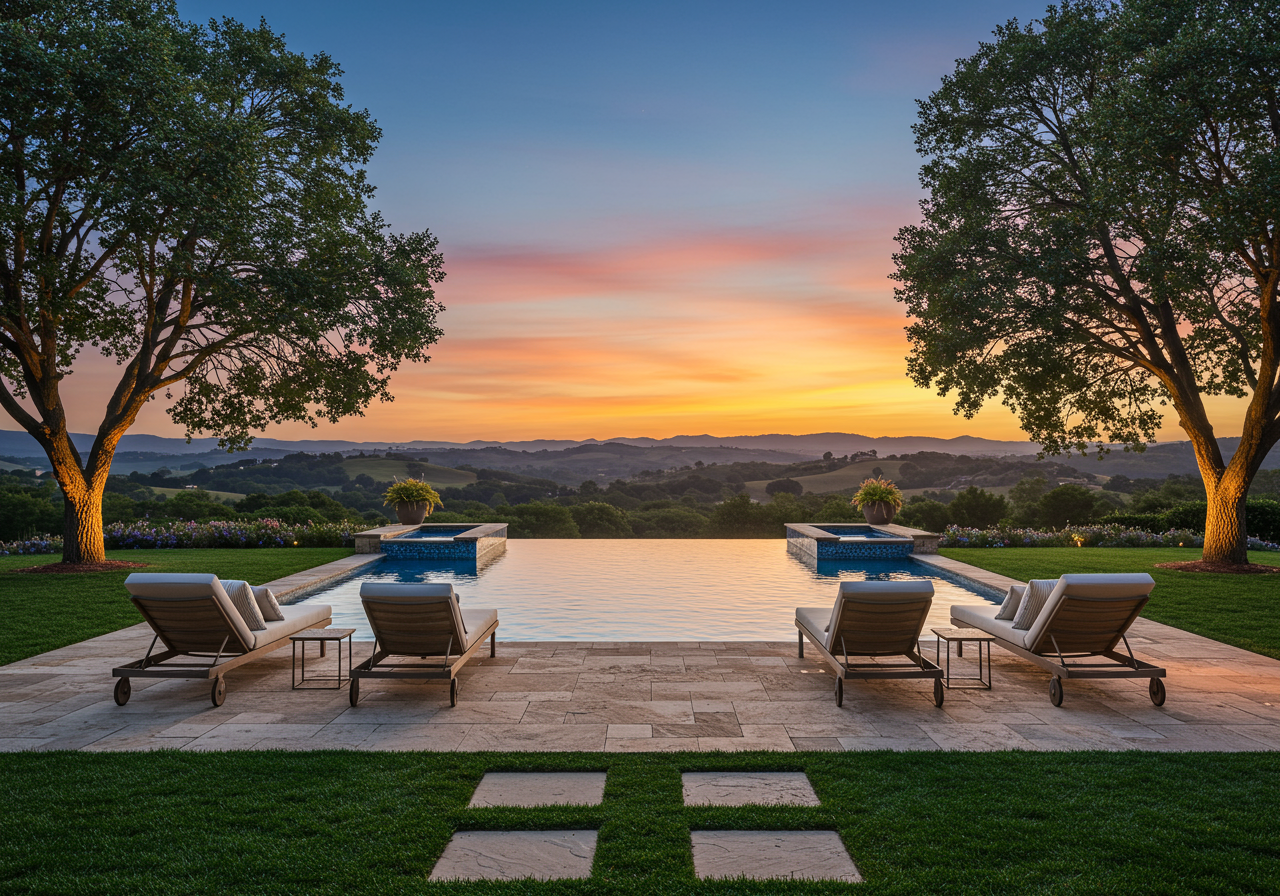 Easygoing yet stylish, the interiors perfectly illustrate the Gleason dictum “Invest in quality pieces that can follow you anywhere.” Summer Hill furnishings—many of which Rela devised specifically for this project—predominate, complemented by handsome antiques and bespoke pieces, including a bronze bed made for the Gleasons by San Francisco designer Andrew Fisher. Striking details, such as the graphic, unifying cadence of the black steel window mullions and the formal silhouettes of flea-market chandeliers, lend uncommon grace notes. “There’s a lot of high-low here,” Rela points out. Rubble leftover from cutting the foundation into the hillside was used to build garden walls and outdoor showers. The kitchen’s three islands are in virtually constant use, thanks to the Gleasons’ busy entertaining schedule—complete with Gleason Cabernet from the couple’s boutique Summer Hill Vineyards always on the menu.