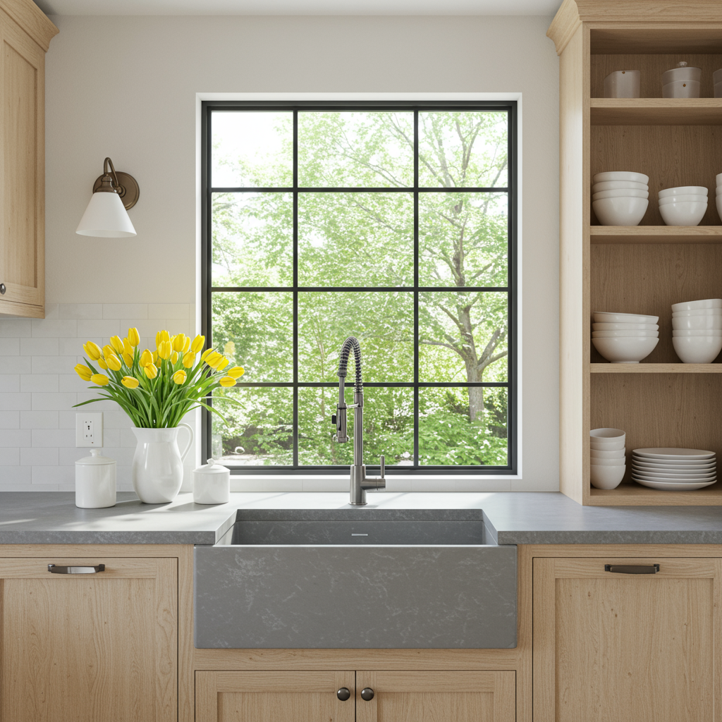 The home and its various functions all but guaranteed it would gain increased character over time, rather than through imitation aging. “I wasn’t interested in mimicking the wine-country buildings of another region,” McAlpine says, going on to describe the Gleason residence as “gentrified Western, with one part southern England and one part southern France.” Rela senses hints of the Flemish farmhouses of her Belgian childhood but emphasizes that the architecture nonetheless possesses a Napa-style authenticity. “This is an honest house, not a faux-Tuscan villa,” she says. The gray-beige color of the exterior is neutral and recessive, the intent being that it would allow any shape, even the steeply pitched roofs that define the profile, to better fade into the landscape. The primary materials of steel, glass, native Western red cedar, locally quarried stone, and concrete shingles aid in this effect. As McAlpine observes, “The house is not an object. It’s experiential—a place.”