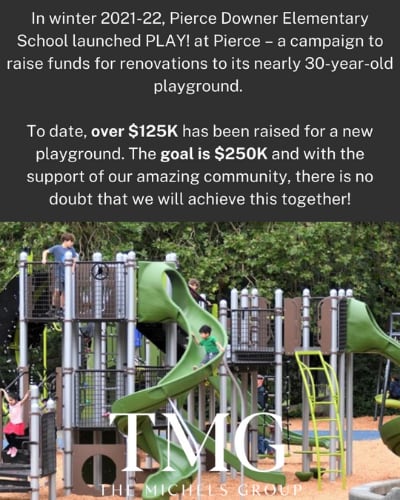In the winter of 2021-22, Pierce Downer Elementary School launched PLAY! at Pierce – a campaign to raise funds for renovations to its nearly 30-year-old playground.