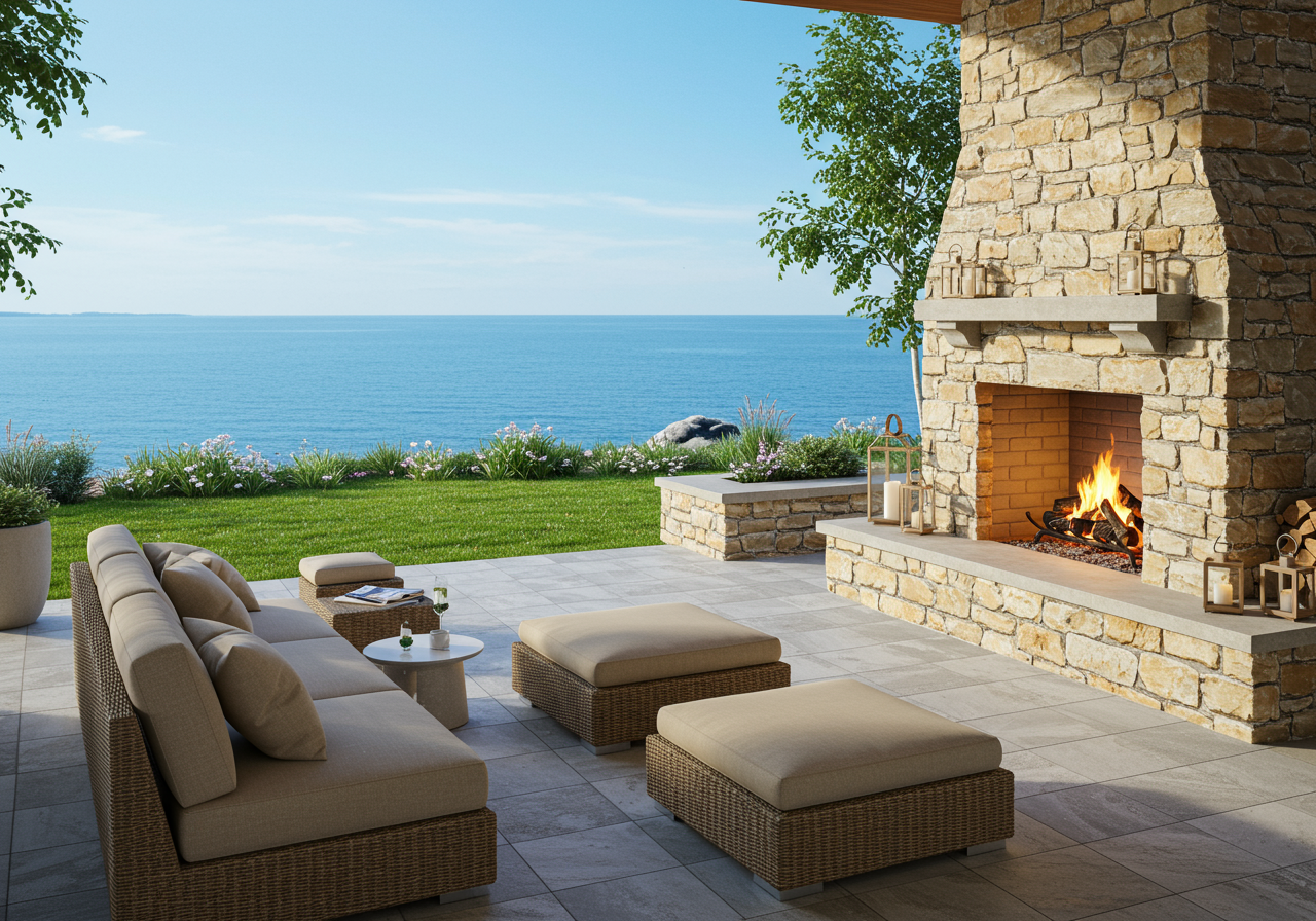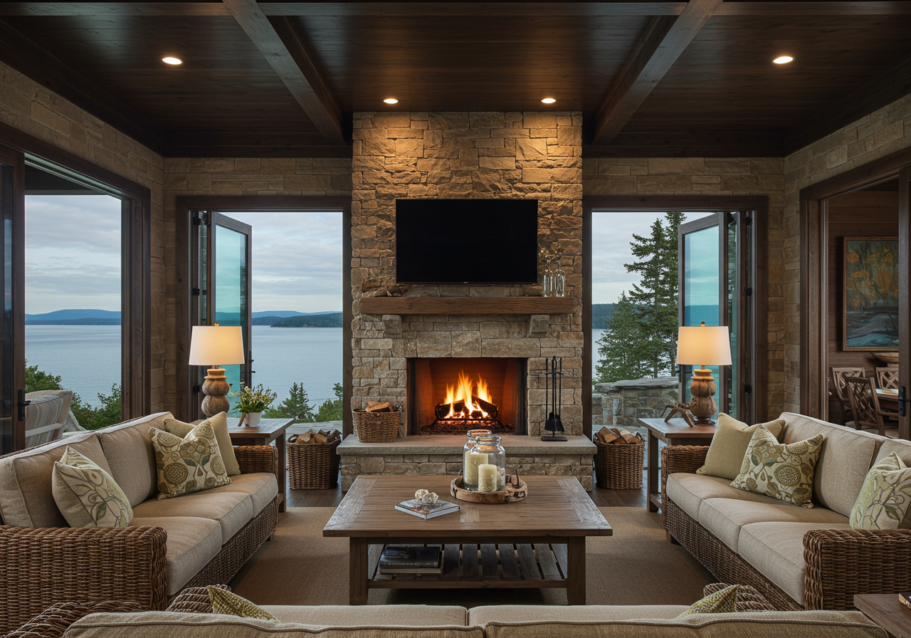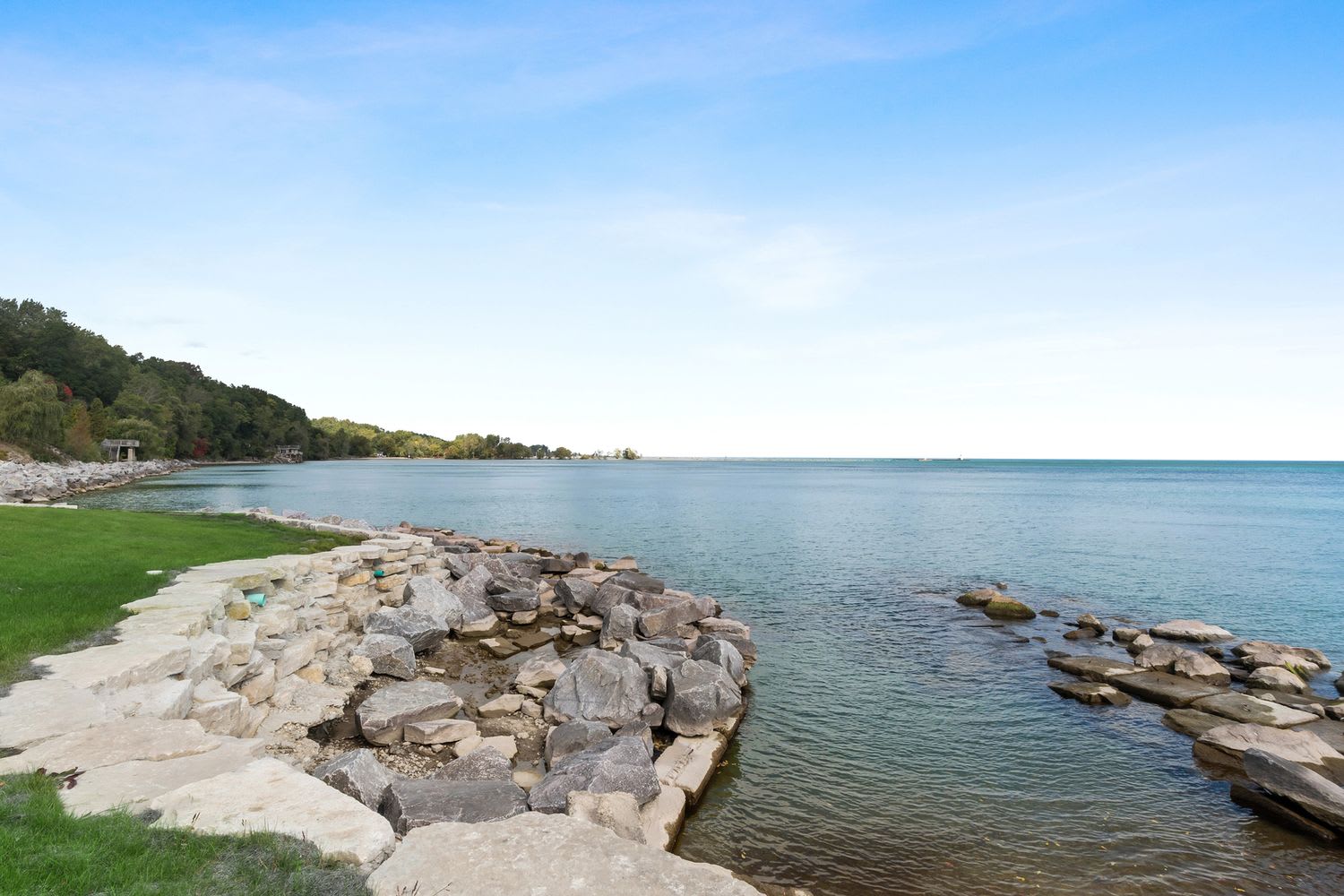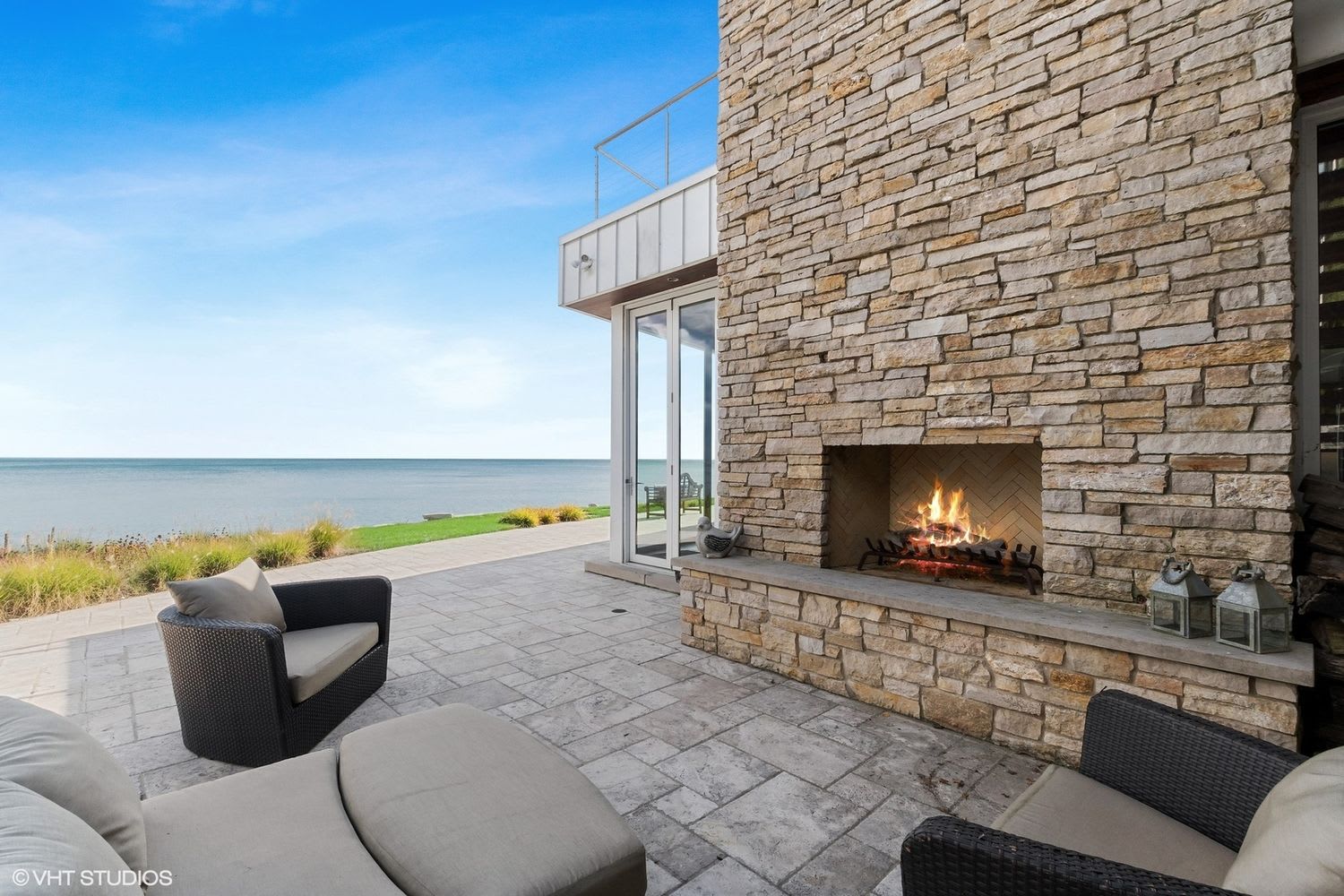 On this property, accessing the lakefront is easy. No steep stairs or tram is needed here. The bluff has been contoured to provide a gradual, broad grassy switchback allowing for a comfortable walk or golf cart ride down to the lake level. At the lake level is a boathouse unlike any other available on the North Shore, truly an incredible setup for entertaining. With over 3,000 square feet of space, it includes an Ipe wood roof deck above, two outdoor fireplaces, and stone patios. Inside, the entire east facade of sliding glass panoramic doors opens to the lake. Full kitchen, family room with fireplace, 2 baths. Room to store all your water toys, including sailboats, jet skis, kayaks, and canoes.
