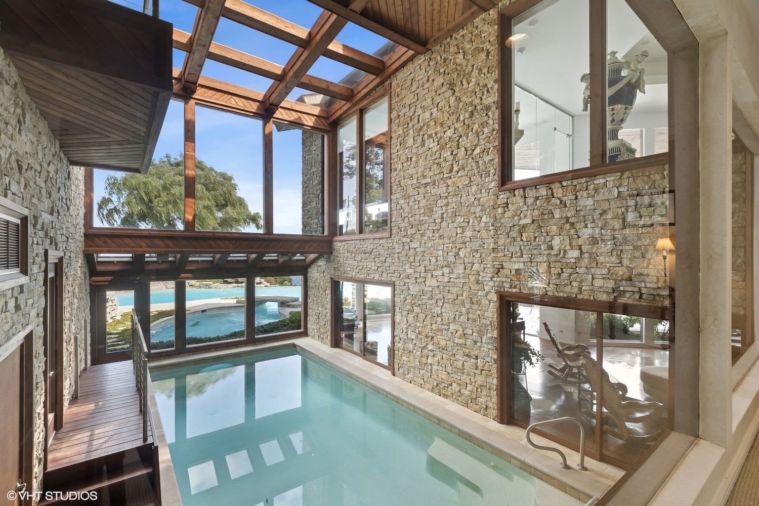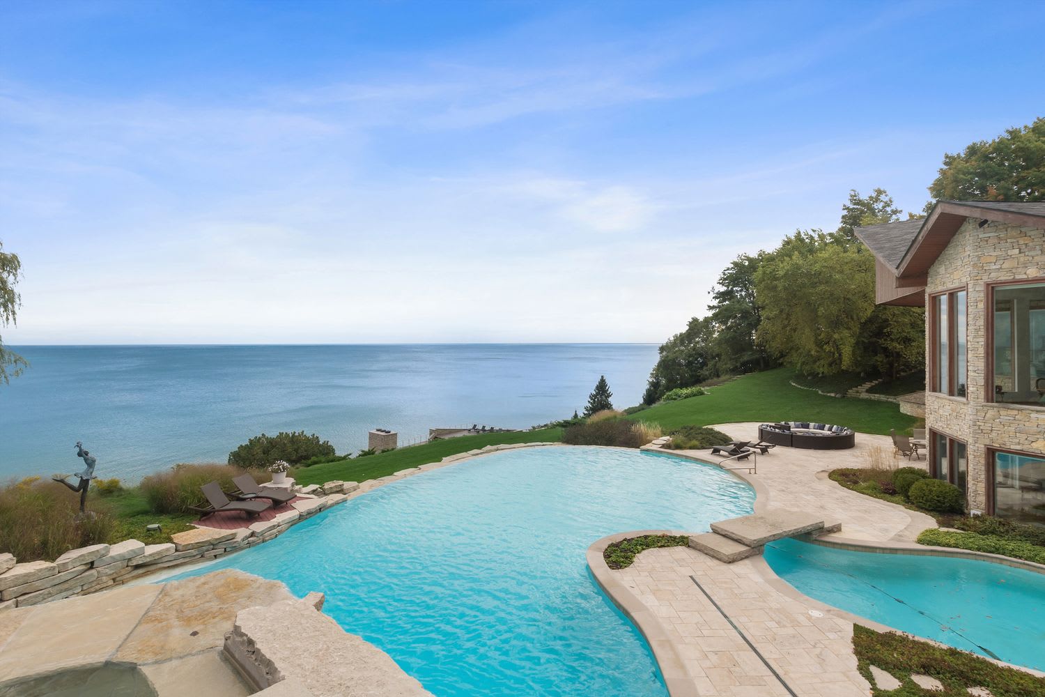 A stunning mansion in Lake Bluff with indoor and outdoor pools, waterfalls, and the feel of a resort is the second home in that suburb to sell for more than $7 million in less than a month. The estate is a little over 3 acres with 320 feet of Lake Michigan shoreline, has a 10,000-square-foot main house on the bluff, and a 3,000-square-foot entertainment cabana down closer to the water. The property was first put on the market in May 2021, asking nearly $10 million.