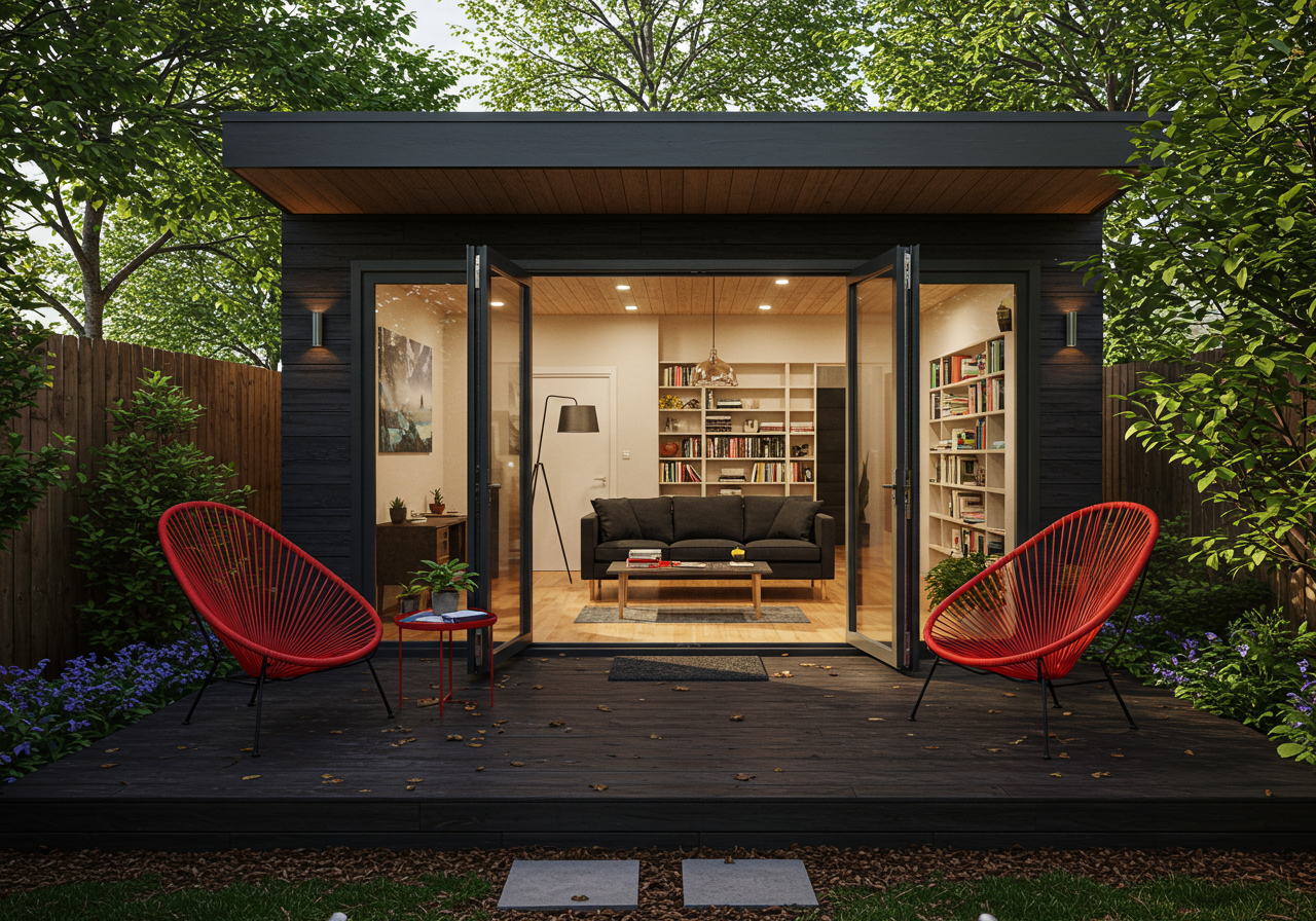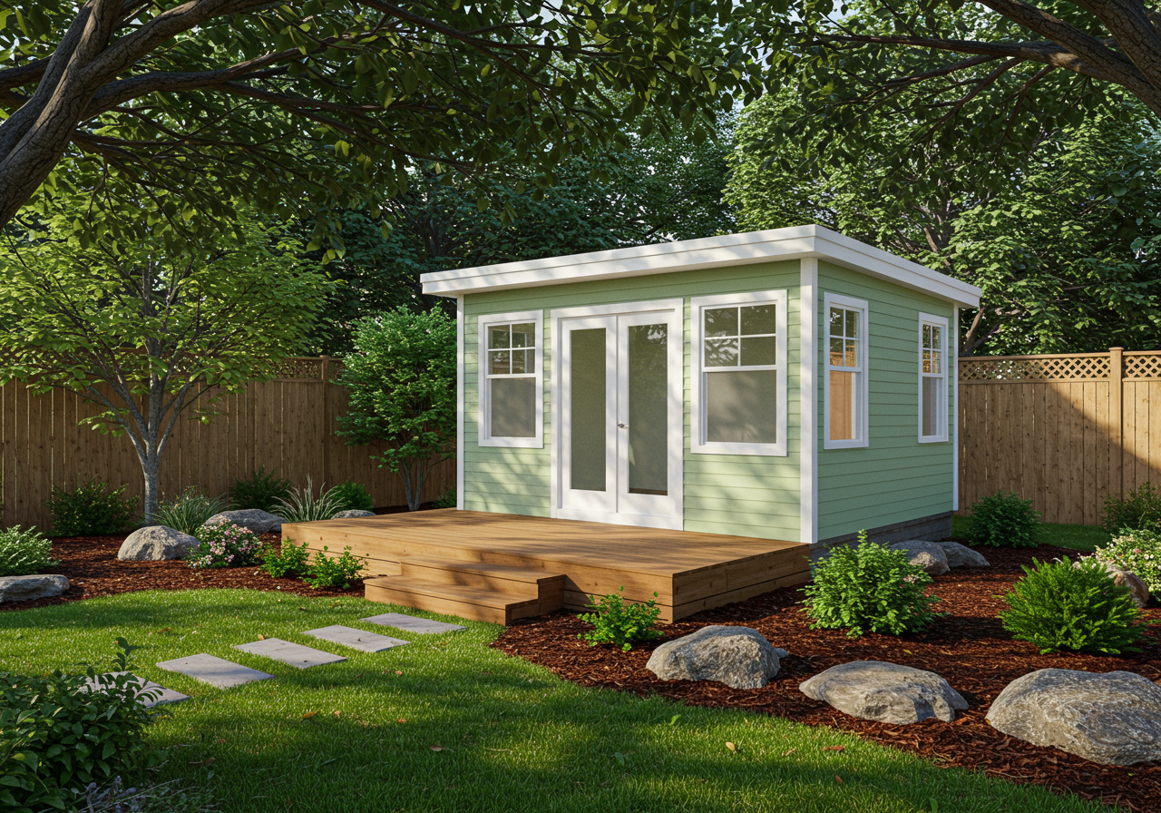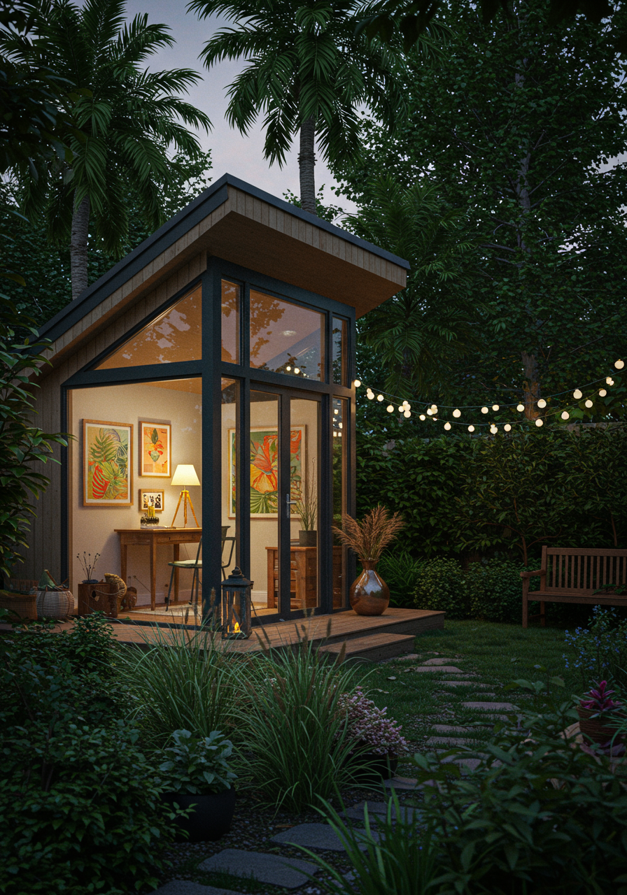 If space allows, build a separate workshop in the backyard. Natural light and floor-to-ceiling glass windows are an awesome addition to keep it light and airy, which helps boost productivity and creativity and doesn't disrupt the visual flow of the landscape.