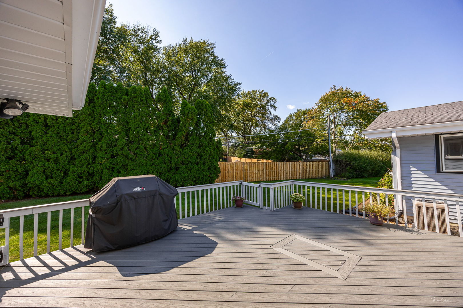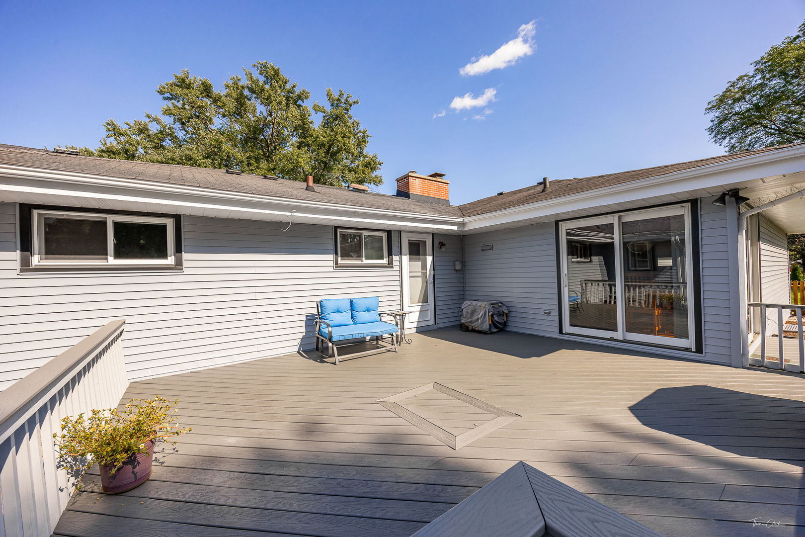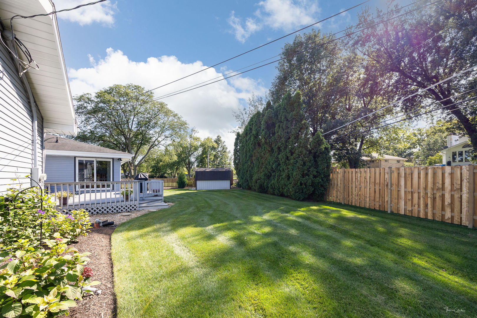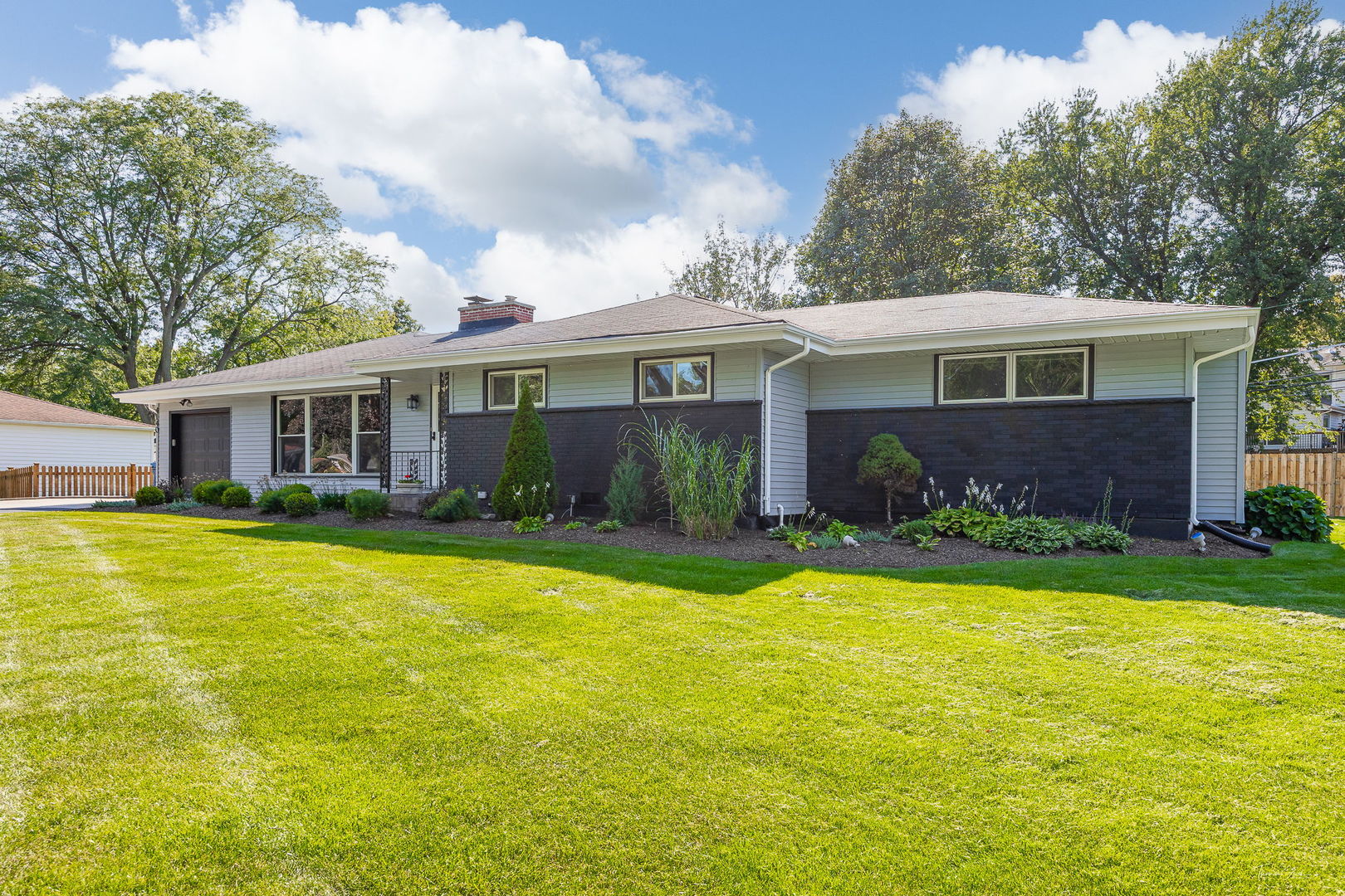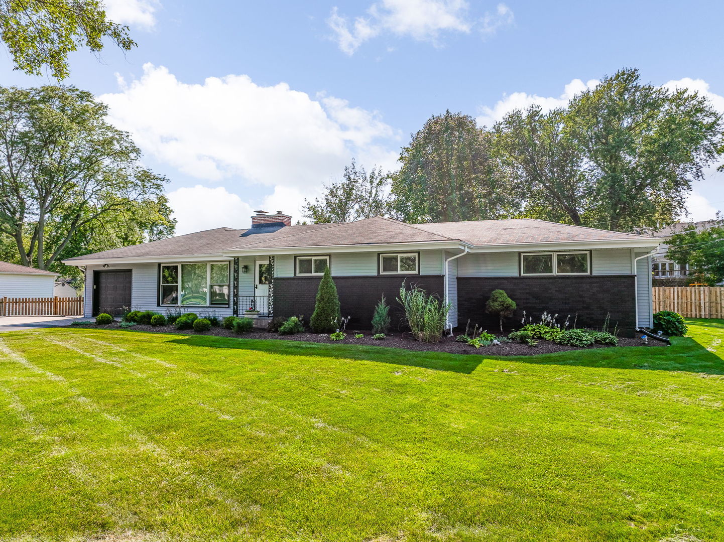 Lovely ranch home meticulously maintained. This is such a fun unique home. Two additions over the years have added wonderful living space. First addition added vaulted family room and expanded kitchen. 2nd addition added primary bedroom with 2 walk in closets, spa bath and 1st floor laundry. An additional furnace/ac was added also. Living room and dining room share a stone corner fireplace. Kitchen has been updated and is open to family room with an island/breakfast bar. Bedroom 2, 3 & 4 all have hardwood under carpet. Hall bath remodel 2021. Newer windows in living and family rooms, garage, basement, & half bath. Skylights in family room and primary bedroom help to make this a sunny, bright house. Hardwood flooring was recently refinished. Main home furnace/ac new in 2020. Garage is just as tidy as home with new epoxy floor and fresh paint. Outdoor space is perfectly cared for. Huge yard. New trex deck (2019). Paver sidewalk/partial driveway recently updated. Exterior house/shed/deck rails painted in 2024. Fabulous location close to schools, shopping, restaurants, playground. Not far from train, town, library. Easy access to highways. Perfect expanded ranch home.
