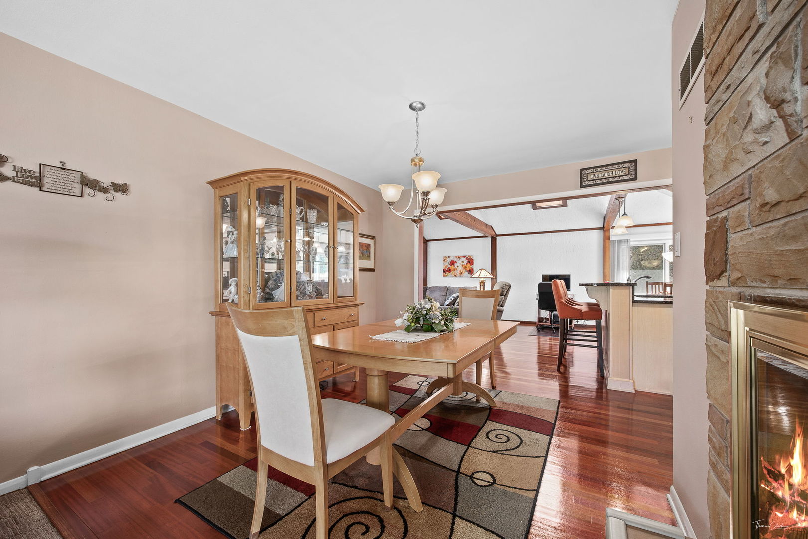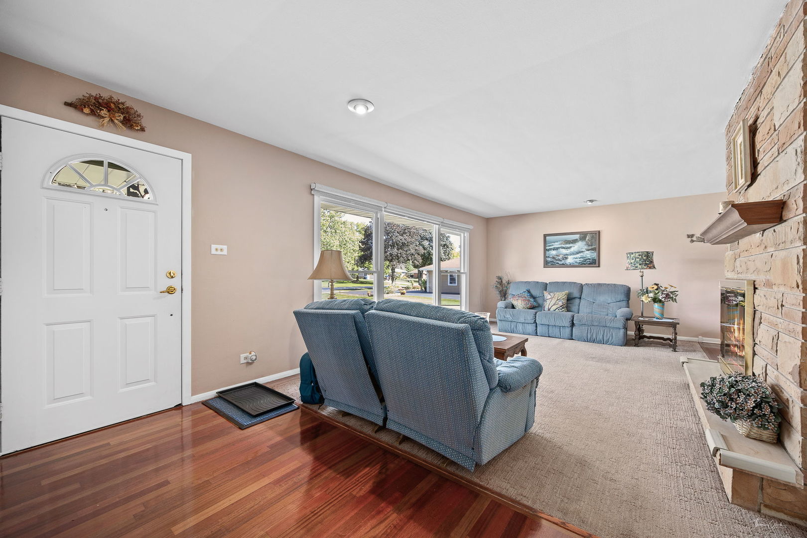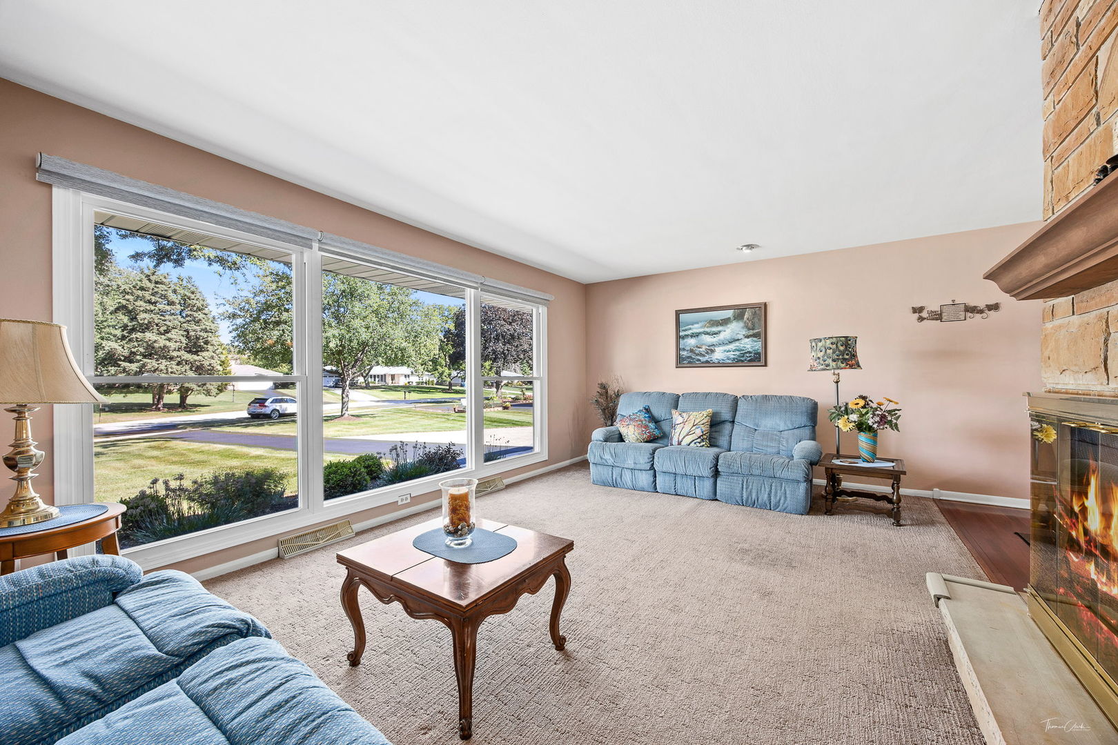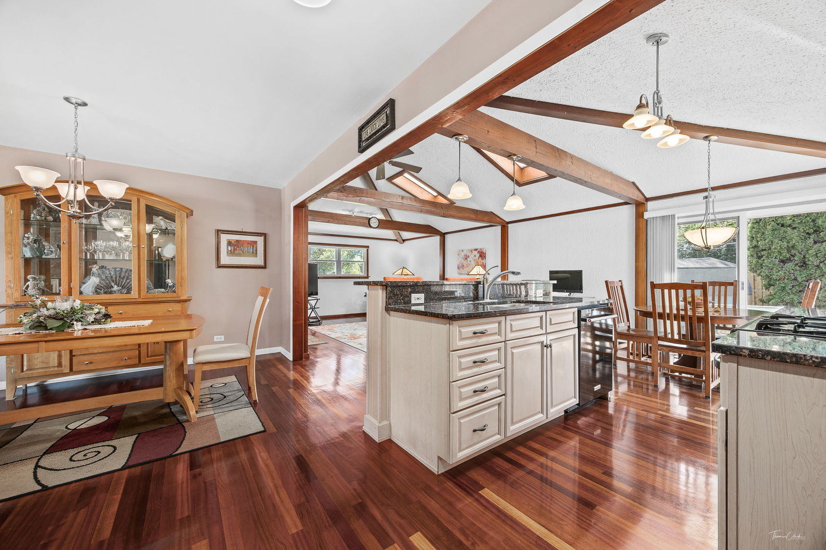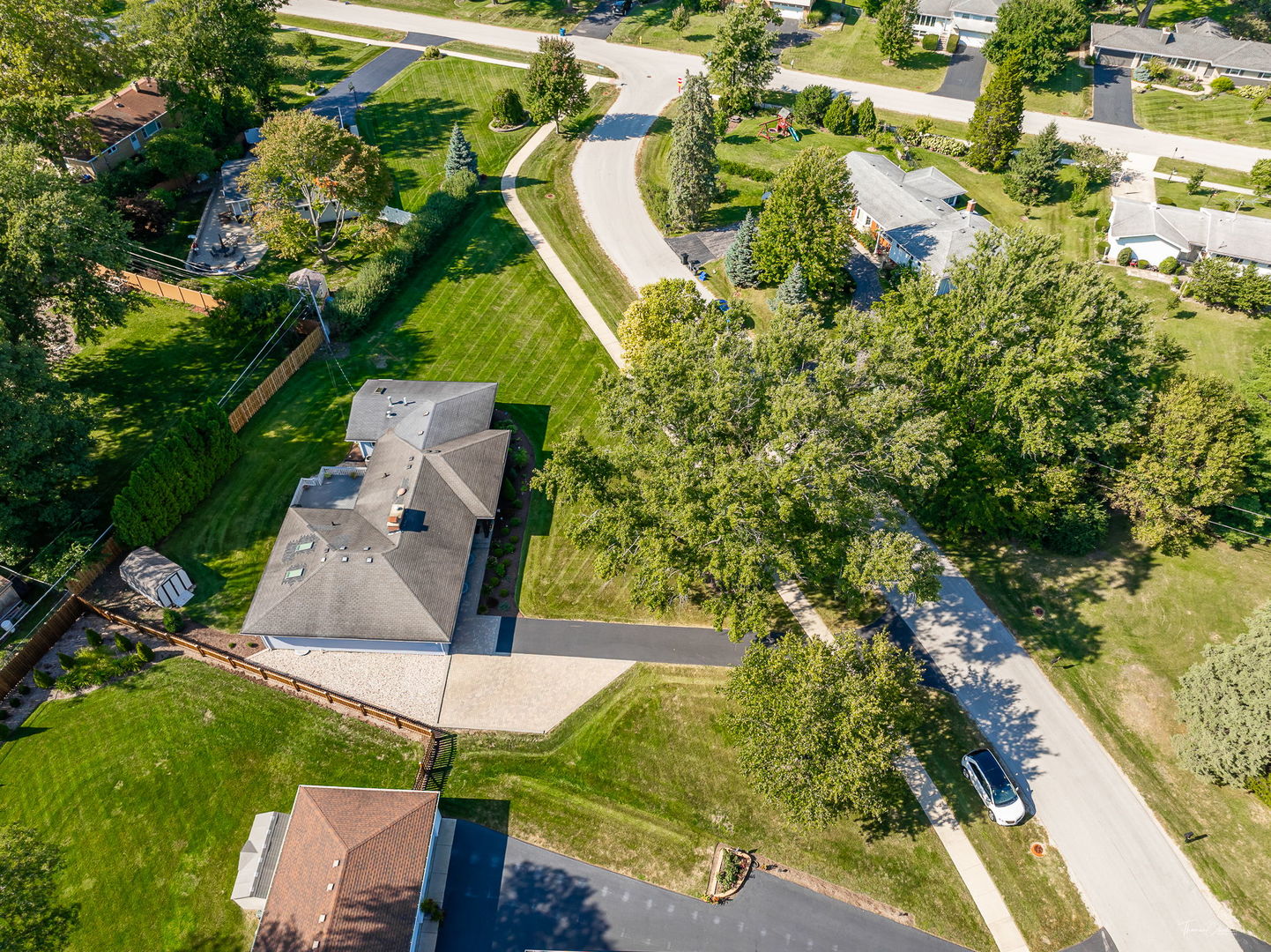 Lovely ranch home meticulously maintained. This is such a fun unique home. Two additions over the years have added wonderful living space. First addition added vaulted family room and expanded kitchen. 2nd addition added primary bedroom with 2 walk in closets, spa bath and 1st floor laundry. An additional furnace/ac was added also. Living room and dining room share a stone corner fireplace. Kitchen has been updated and is open to family room with an island/breakfast bar. Bedroom 2, 3 & 4 all have hardwood under carpet. Hall bath remodel 2021. Newer windows in living and family rooms, garage, basement, & half bath. Skylights in family room and primary bedroom help to make this a sunny, bright house. Hardwood flooring was recently refinished. Main home furnace/ac new in 2020. Garage is just as tidy as home with new epoxy floor and fresh paint. Outdoor space is perfectly cared for. Huge yard. New trex deck (2019). Paver sidewalk/partial driveway recently updated. Exterior house/shed/deck rails painted in 2024. Fabulous location close to schools, shopping, restaurants, playground. Not far from train, town, library. Easy access to highways. Perfect expanded ranch home.