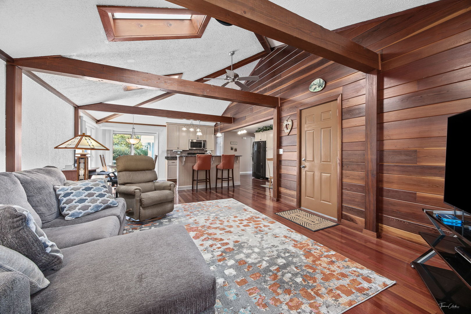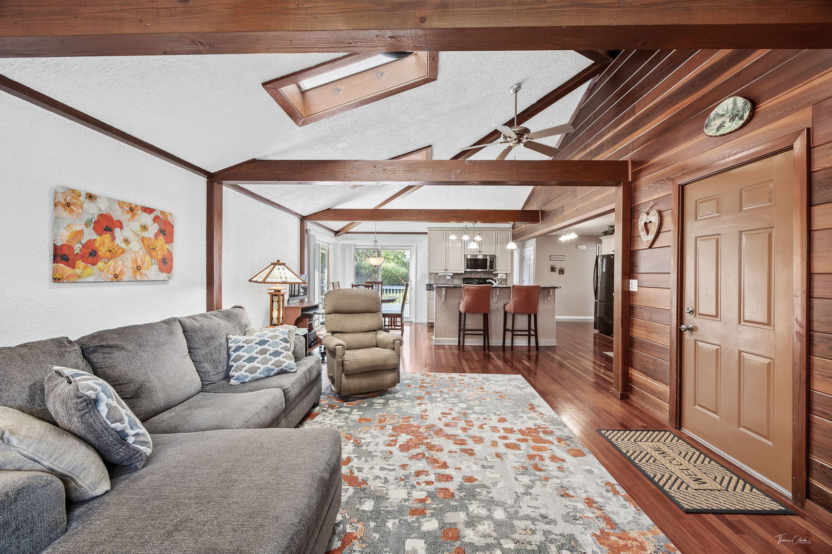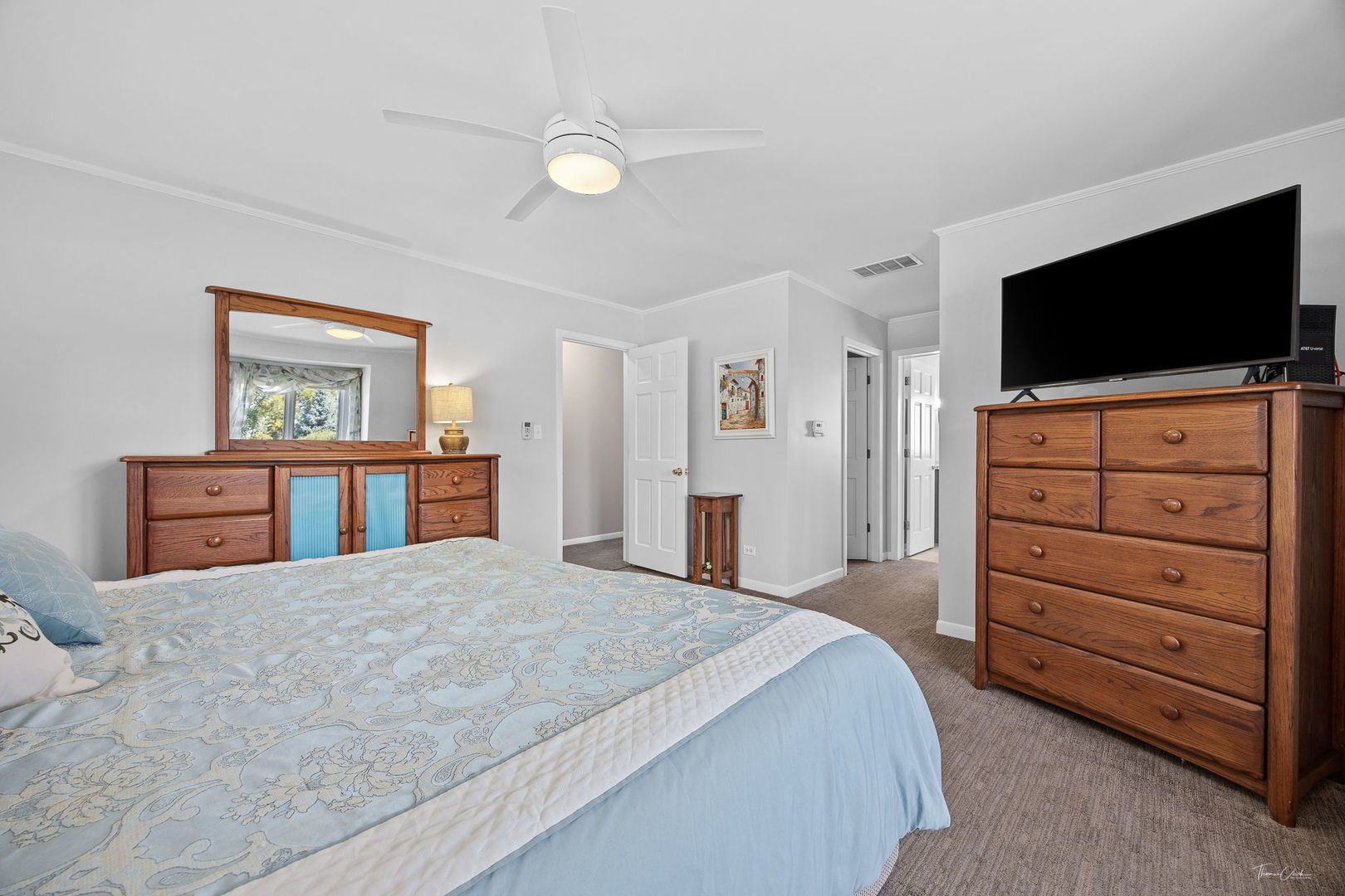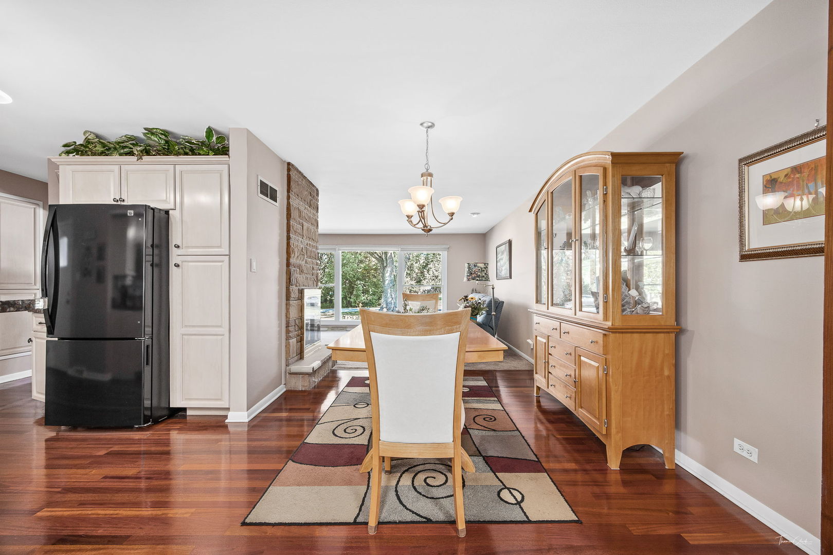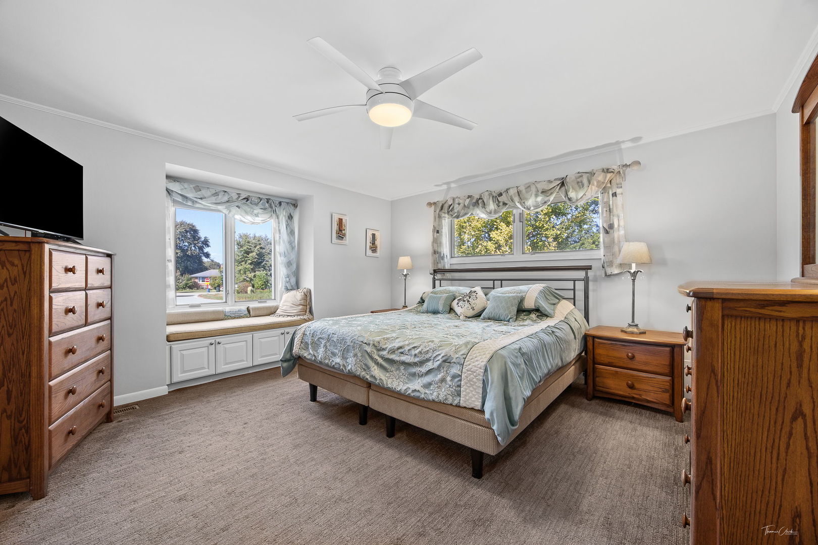 Lovely ranch home meticulously maintained. This is such a fun unique home. Two additions over the years have added wonderful living space. First addition added vaulted family room and expanded kitchen. 2nd addition added primary bedroom with 2 walk in closets, spa bath and 1st floor laundry. An additional furnace/ac was added also. Living room and dining room share a stone corner fireplace. Kitchen has been updated and is open to family room with an island/breakfast bar. Bedroom 2, 3 & 4 all have hardwood under carpet. Hall bath remodel 2021. Newer windows in living and family rooms, garage, basement, & half bath. Skylights in family room and primary bedroom help to make this a sunny, bright house. Hardwood flooring was recently refinished. Main home furnace/ac new in 2020. Garage is just as tidy as home with new epoxy floor and fresh paint. Outdoor space is perfectly cared for. Huge yard. New trex deck (2019). Paver sidewalk/partial driveway recently updated. Exterior house/shed/deck rails painted in 2024. Fabulous location close to schools, shopping, restaurants, playground. Not far from train, town, library. Easy access to highways. Perfect expanded ranch home.